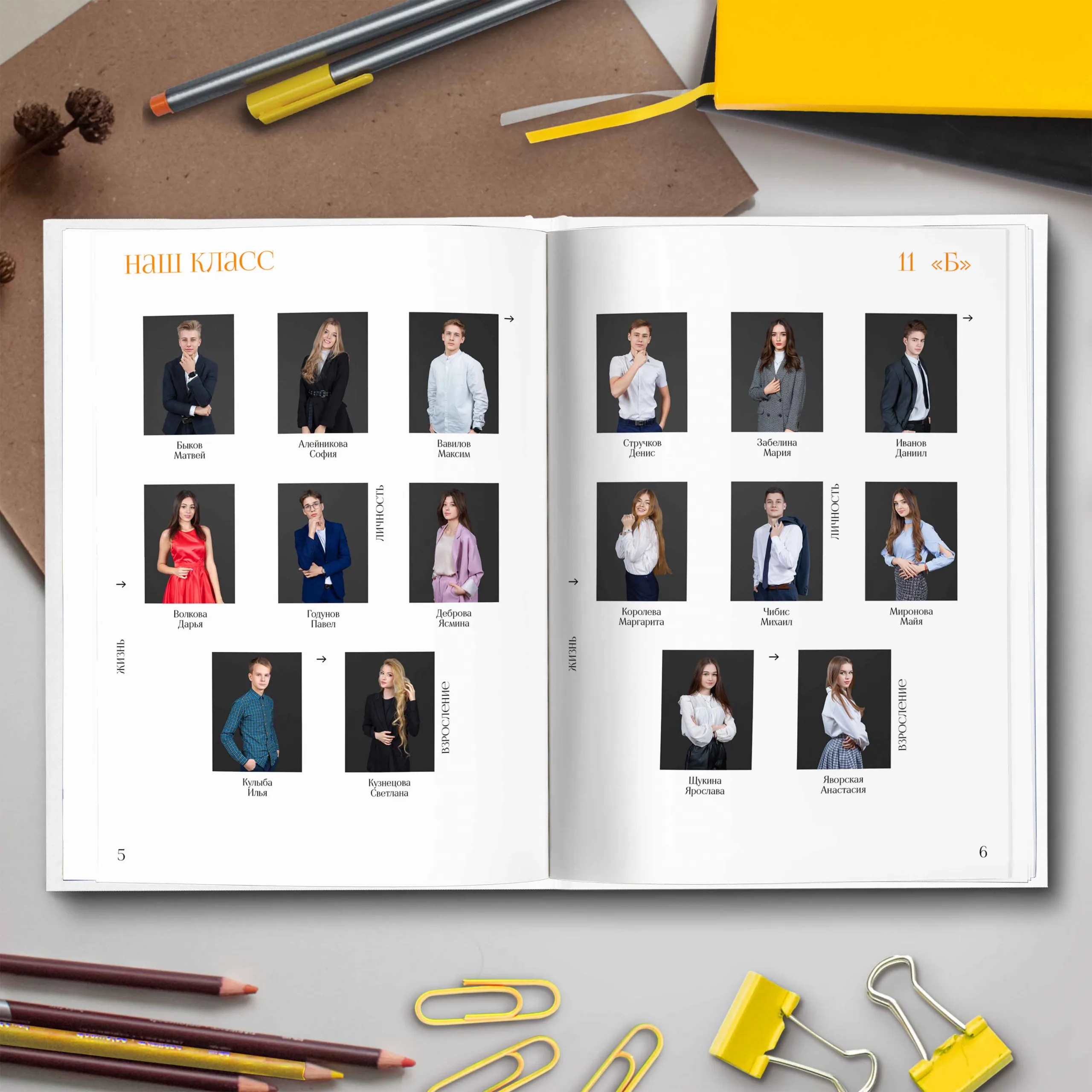 4ый разворот и далее — личные страницы учеников с личной характеристикой