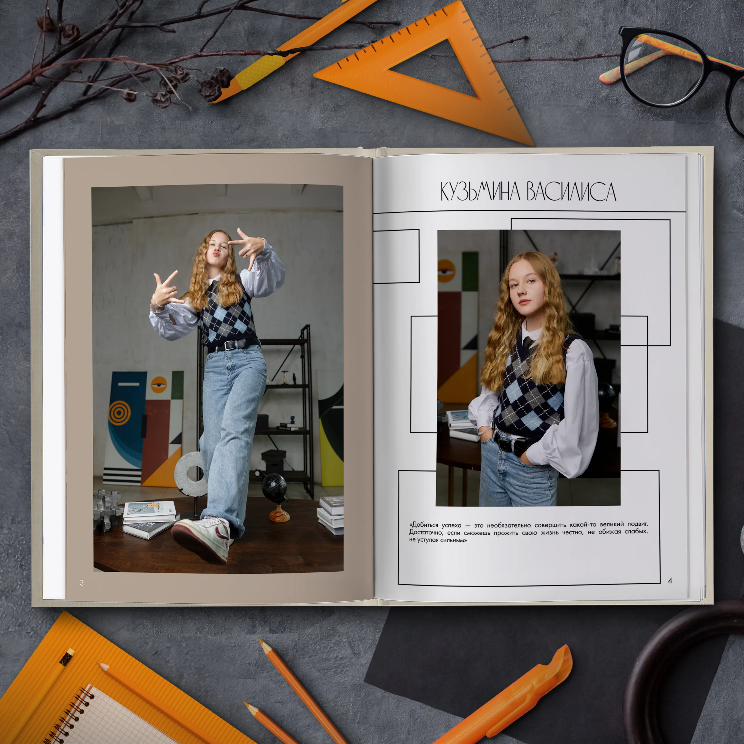 Развороты с виньетками учеников по 4-6 фото на разворот