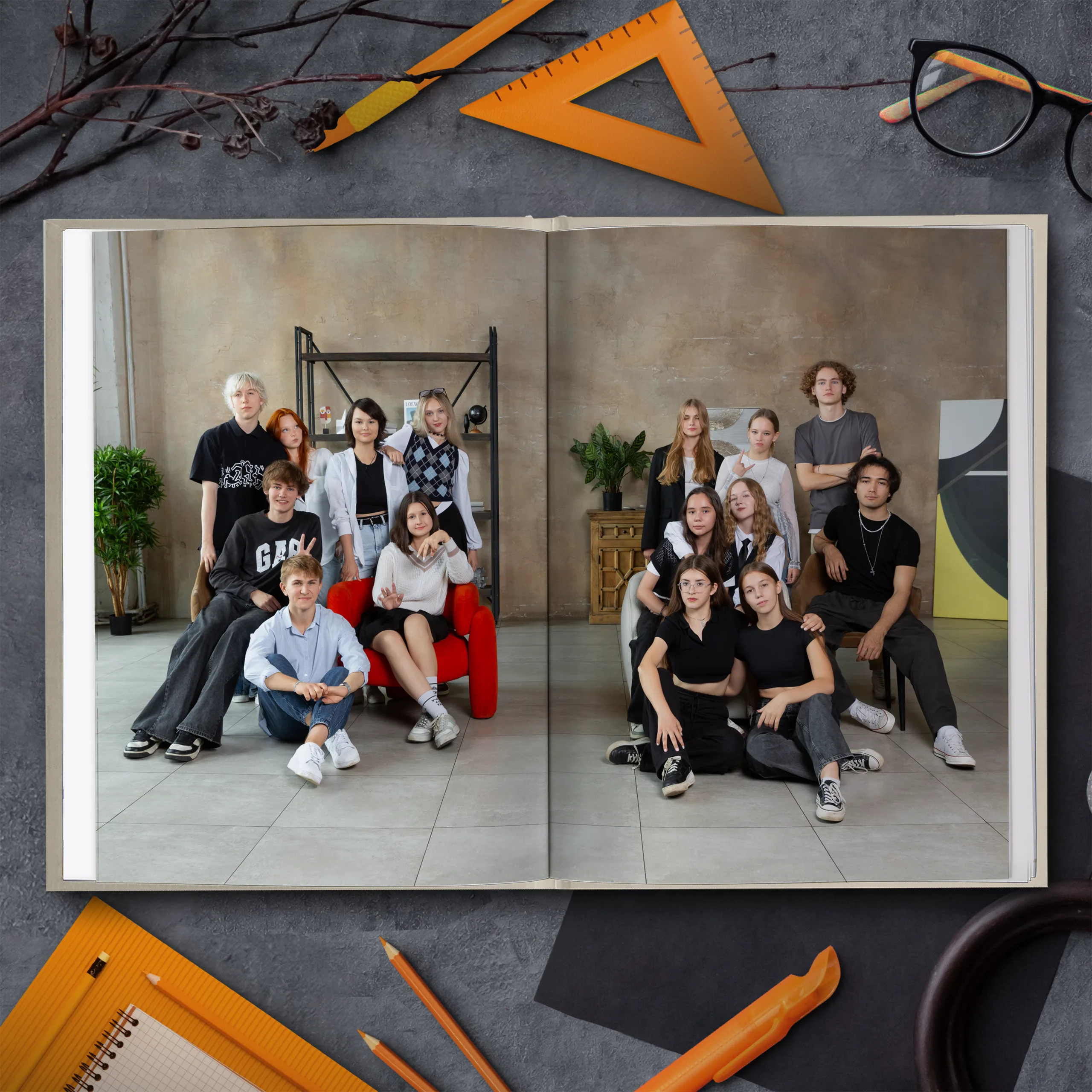 Последние 3 разворота — общие репортажные фотографии класса (20шт.)